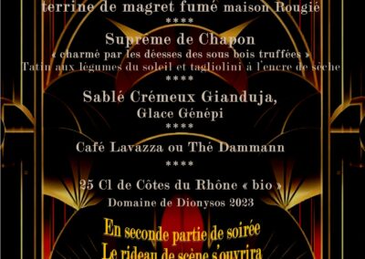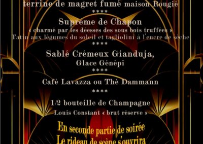 - Menu Champagne avec ½ bouteille par personne Louis Constant brut réserve – 140 €